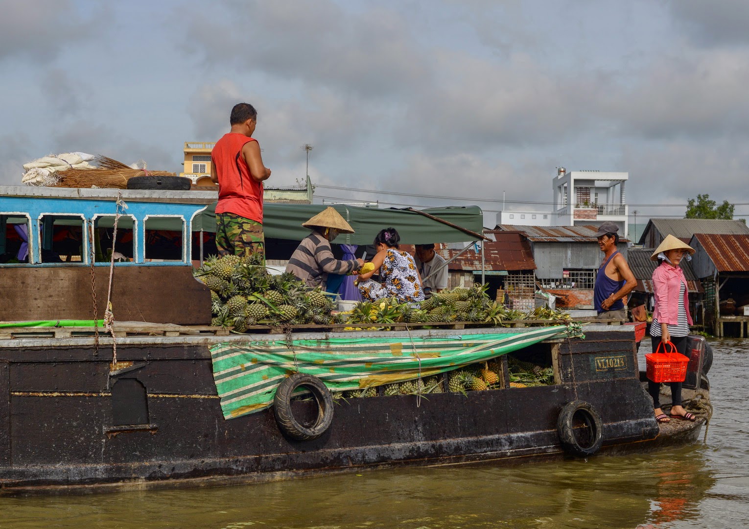 Tolle Eindrücke vom geschäftigen Treiben mitgenommen. Hier werden Früchte und Gemüse aus anderen Regionen angeboten, ebenso wie Snacks und Getränke. Einfach ein kleines Boot heranwinken oder selber an einem festmachen. Und schon läuft das Geschäft.